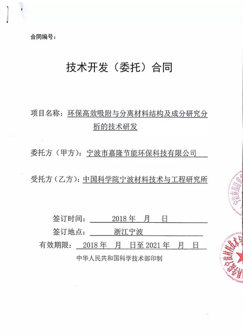寧波市嘉隆節(jié)能環(huán)??萍加邢薰?以下簡(jiǎn)稱“公司”)于近日與中國(guó)科學(xué)院寧波材料技術(shù)與工程研究所簽署了《環(huán)保高效吸附與分離材料結(jié)構(gòu)及成分研究分析的技術(shù)研發(fā)》。合同簽署后公司與中科院進(jìn)行了深入的溝通,啟動(dòng)了相關(guān)項(xiàng)目的科研工作,現(xiàn)將合作環(huán)保高效吸附與分離材料結(jié)構(gòu)及成分研究分析的技術(shù)研發(fā)項(xiàng)目的相關(guān)事宜公告如下: