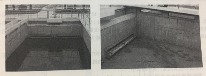 翻板閥濾池的配水系統(tǒng)屬于中(小)阻力配水系統(tǒng),采用獨(dú)特的上下雙層配氣配水層形 式,由橫向配水管、豎向配水管和豎向配氣管組成。這種獨(dú)特的結(jié)構(gòu)特點(diǎn)使得翻板閥濾池獲 得較其它類型濾池更均勻的配水配氣性能。 翻板閥濾池的反沖洗方式也與其它類型氣水反沖洗濾池不同,翻板閥濾池采用閉閥沖洗 方式,沖洗過(guò)程分為氣沖+氣水聯(lián)沖+水沖、單獨(dú)水沖兩大階段,無(wú)論水沖、氣沖時(shí)都不 向外排水,一個(gè)反沖洗階段結(jié)束后,靜止數(shù)十秒后再排水。因此翻板閥濾池基本不會(huì)出現(xiàn)濾料流失現(xiàn)象。